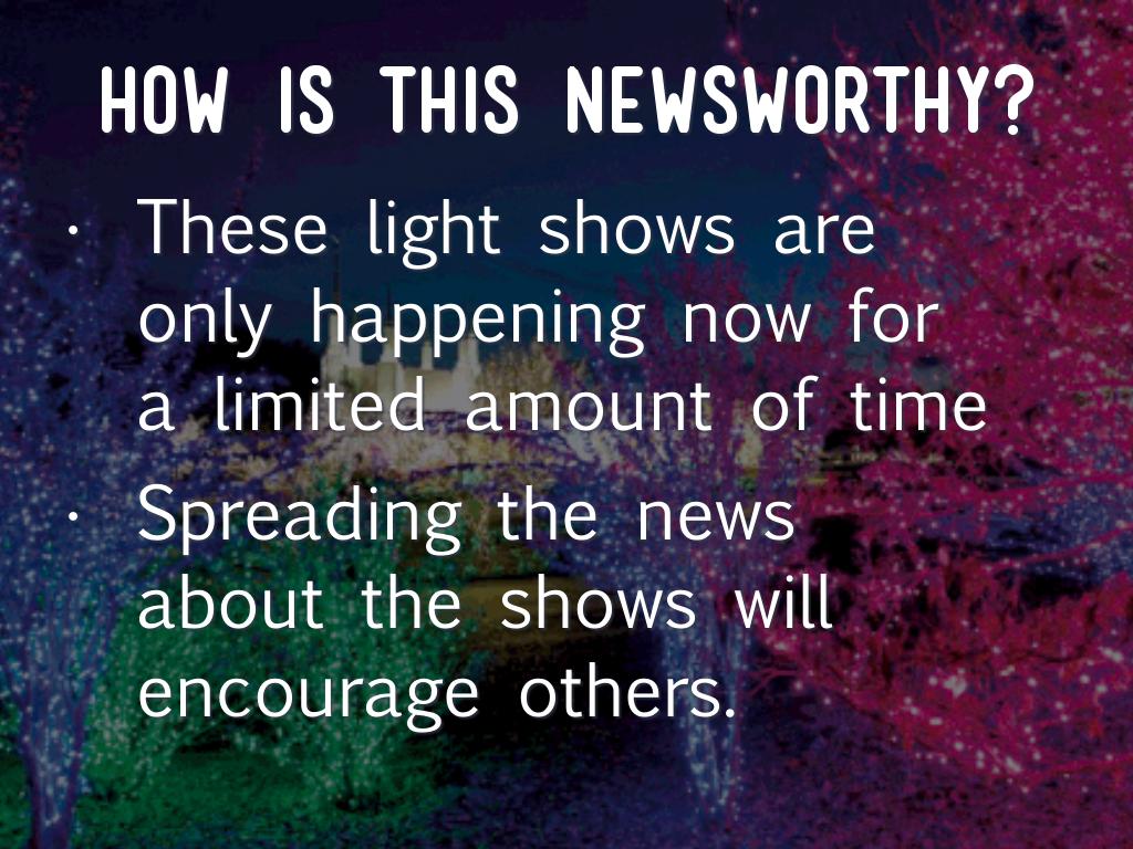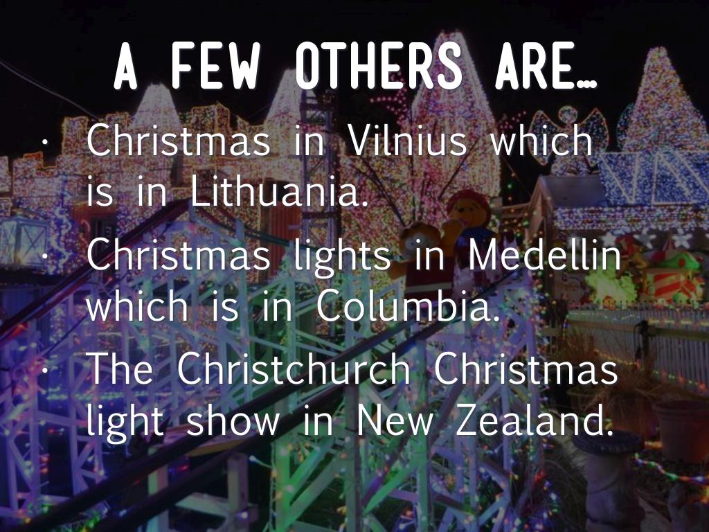From all around the world five people are putting up all different Christmas lights. Everyone comes to see the different unique lights.