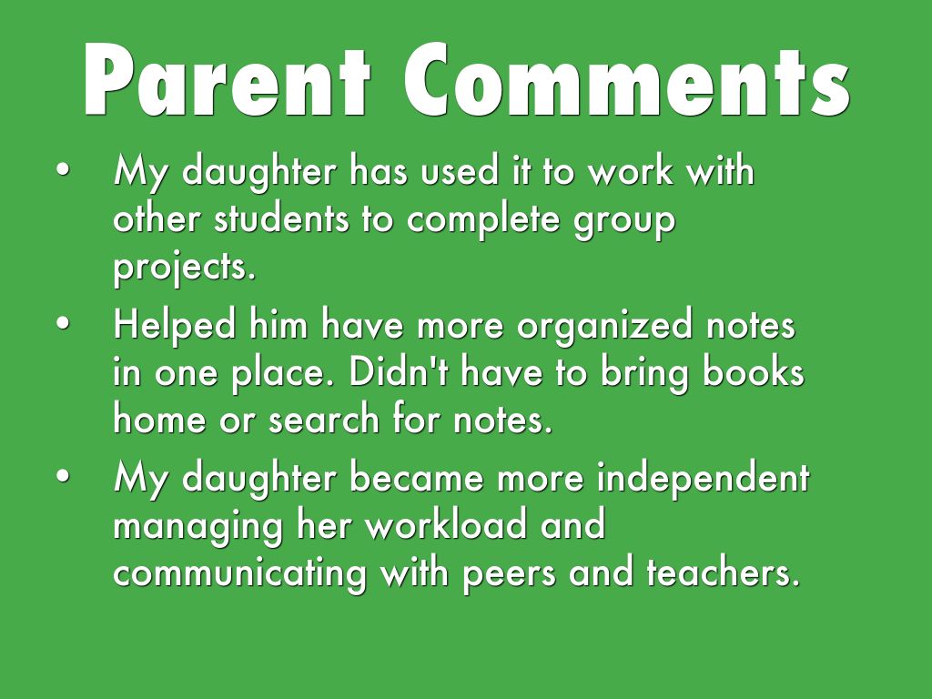 My daughter became more independent managing her workload and communicating with peers and teachers.