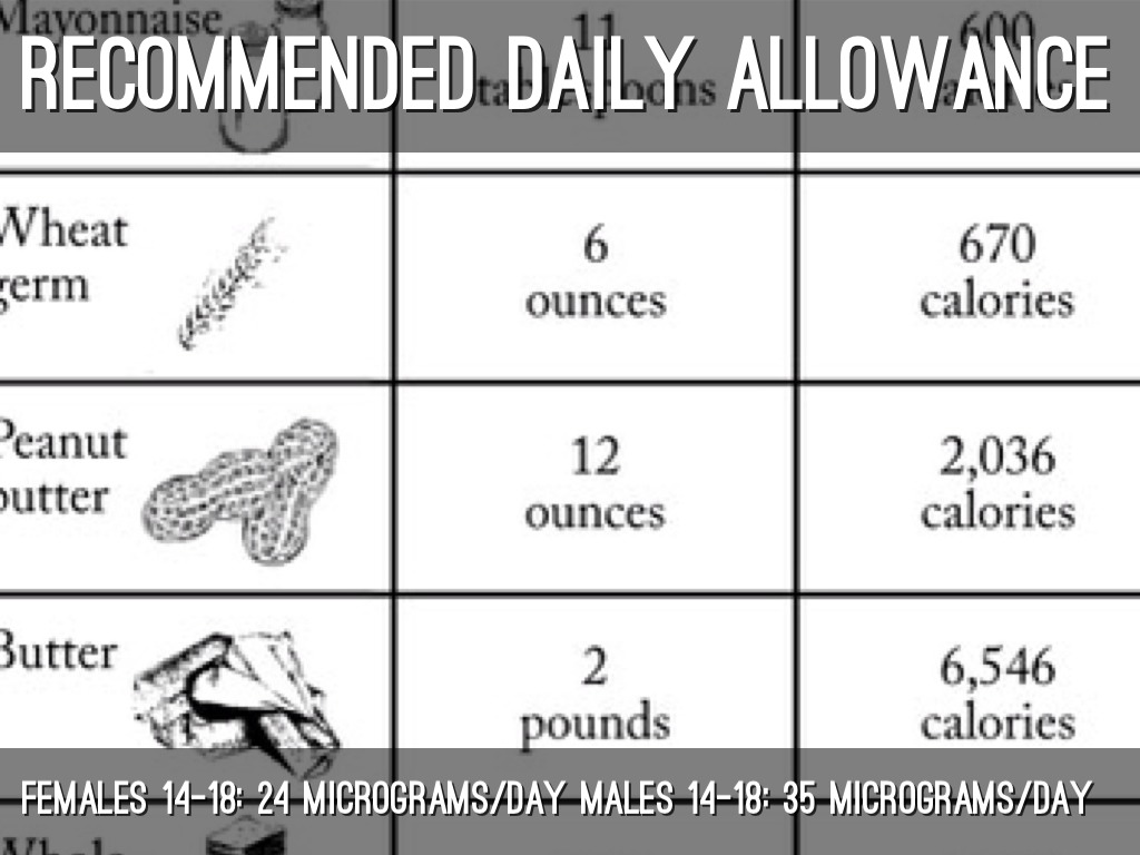FEMALES 14-18: 24 MICROGRAMS/DAY MALES 14-18: 35 MICROGRAMS/DAY