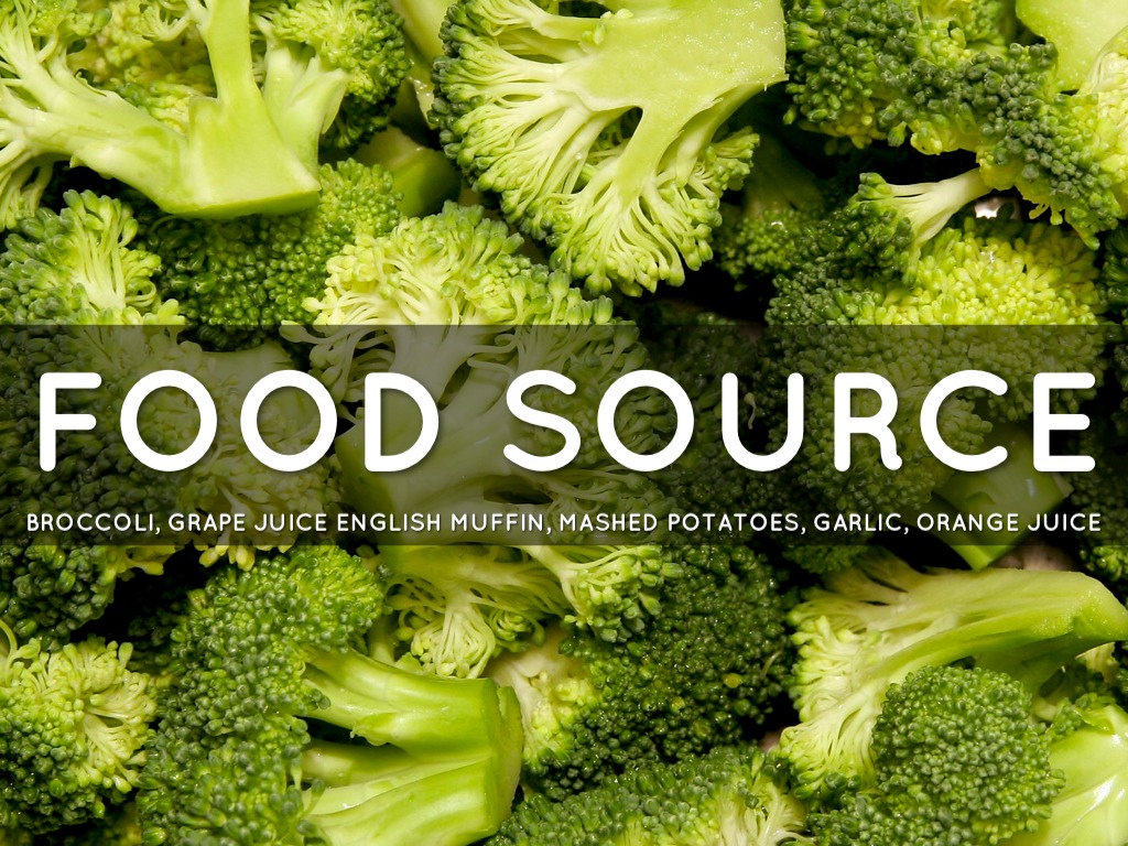 BROCCOLI, GRAPE JUICE ENGLISH MUFFIN, MASHED POTATOES, GARLIC, ORANGE JUICE