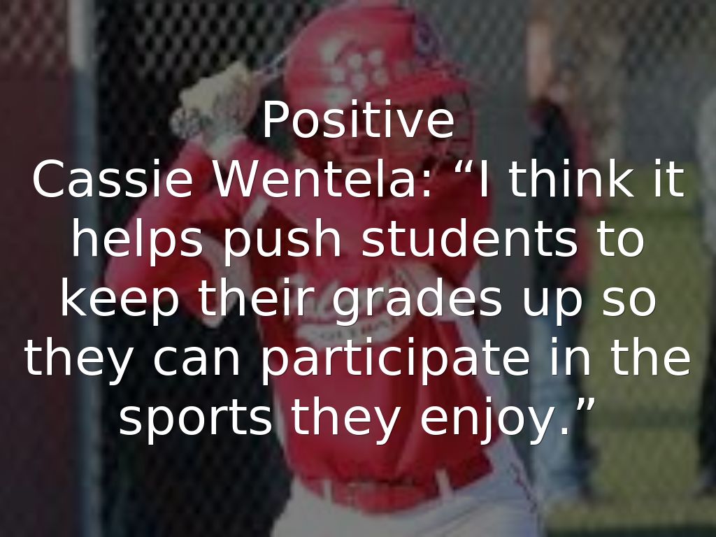 Cassie Wentela: “I think it helps push students to keep their grades up so they can participate in the sports they enjoy.”
