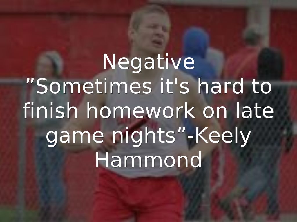 ”Sometimes it's hard to finish homework on late game nights”-Keely Hammond