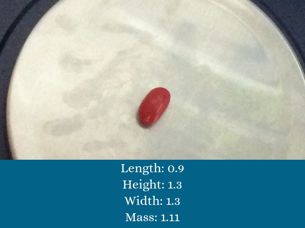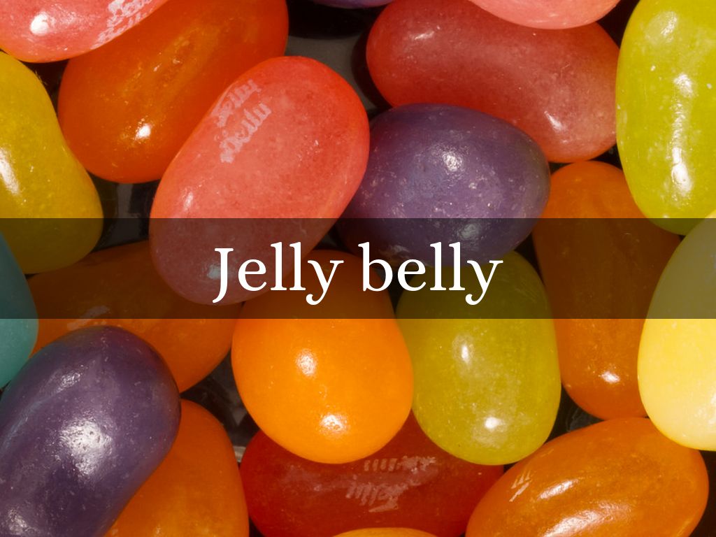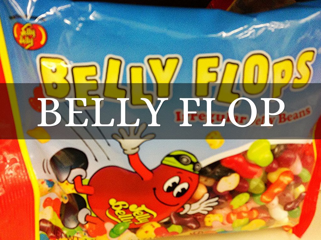 Two regular sized belly flop beans conjoined together and is sparkling pink.