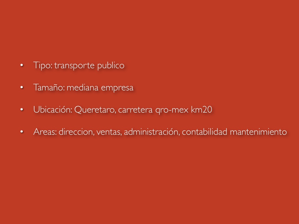 Areas: direccion, ventas, administración, contabilidad mantenimiento