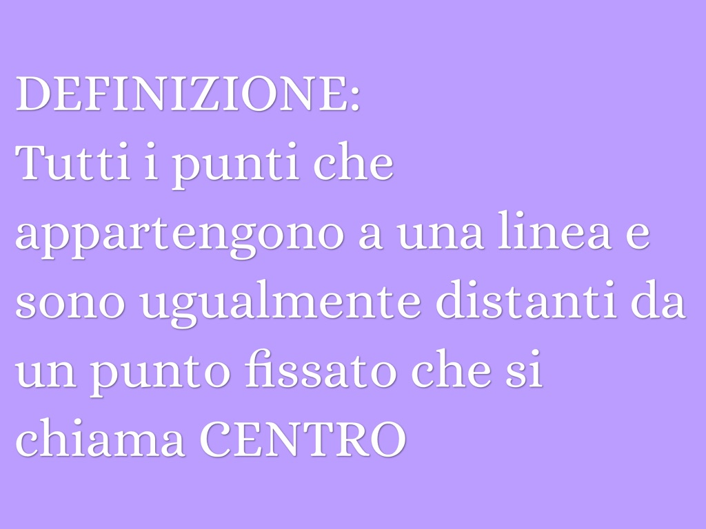 Tutti i punti che appartengono a una linea e sono ugualmente distanti da un punto fissato che si chiama CENTRO