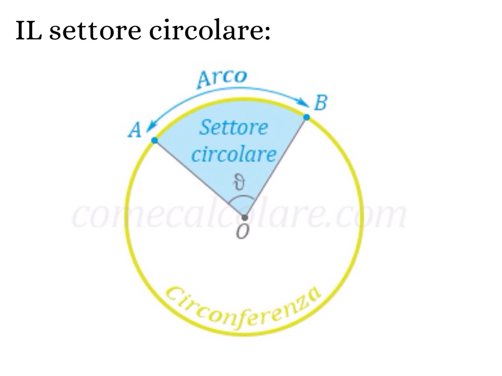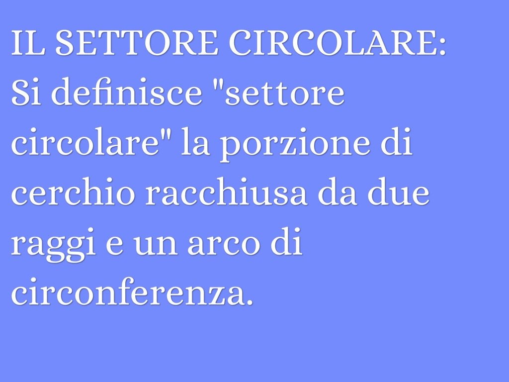 Si definisce "settore circolare" la porzione di cerchio racchiusa da due raggi e un arco di circonferenza.