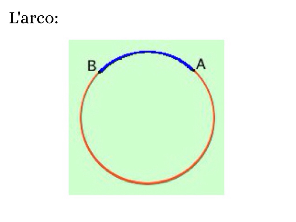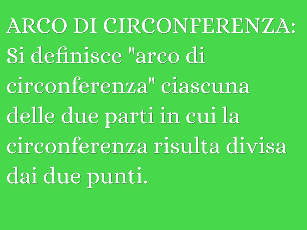 Si definisce "arco di circonferenza" ciascuna delle due parti in cui la circonferenza risulta divisa dai due punti.