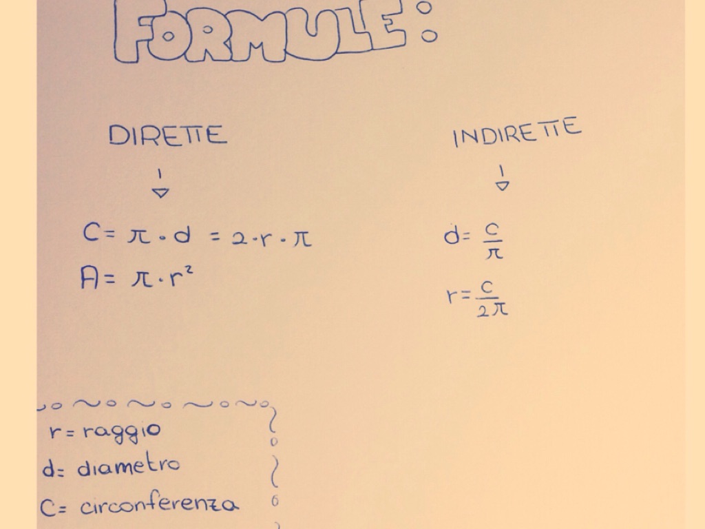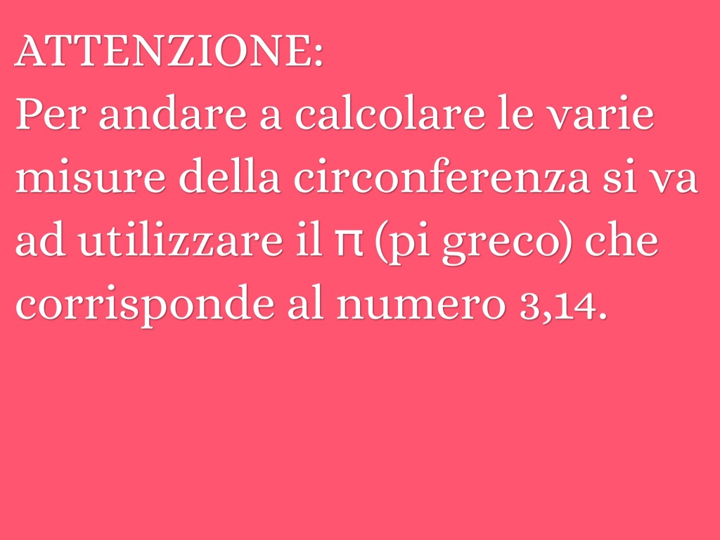 Per andare a calcolare le varie misure della circonferenza si va ad utilizzare il π (pi greco) che corrisponde al numero 3,14.