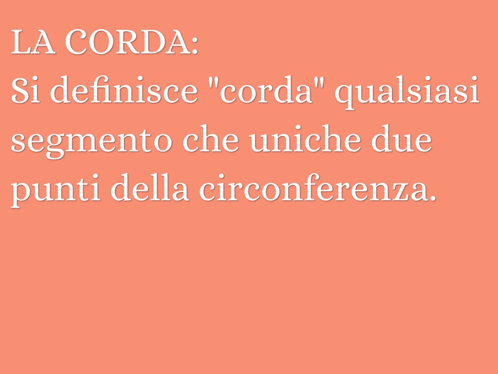 Si definisce "corda" qualsiasi segmento che uniche due punti della circonferenza.