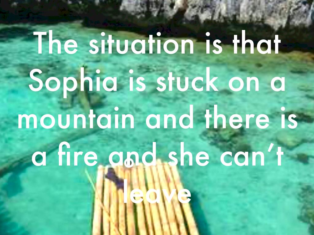 The situation is that Sophia is stuck on a mountain and there is a fire and she can’t leave