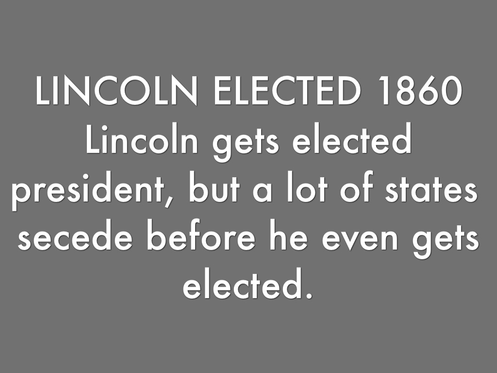 Lincoln gets elected president, but a lot of states secede before he even gets elected.