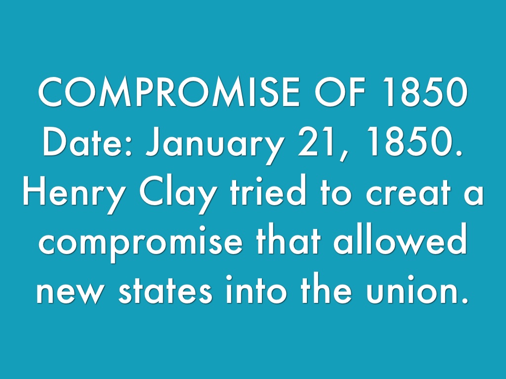 Date: January 21, 1850. Henry Clay tried to creat a compromise that allowed new states into the union.