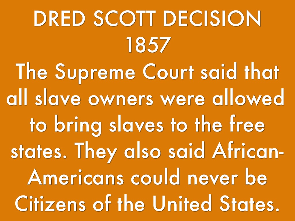 The Supreme Court said that all slave owners were allowed to bring slaves to the free states. They also said African-Americans could never be Citizens of the United States.