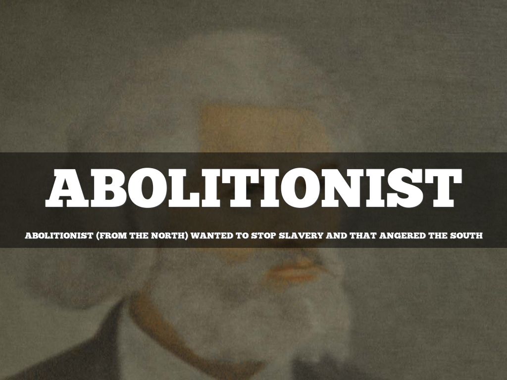 ABOLITIONIST (FROM THE NORTH) WANTED TO STOP SLAVERY AND THAT ANGERED THE SOUTH