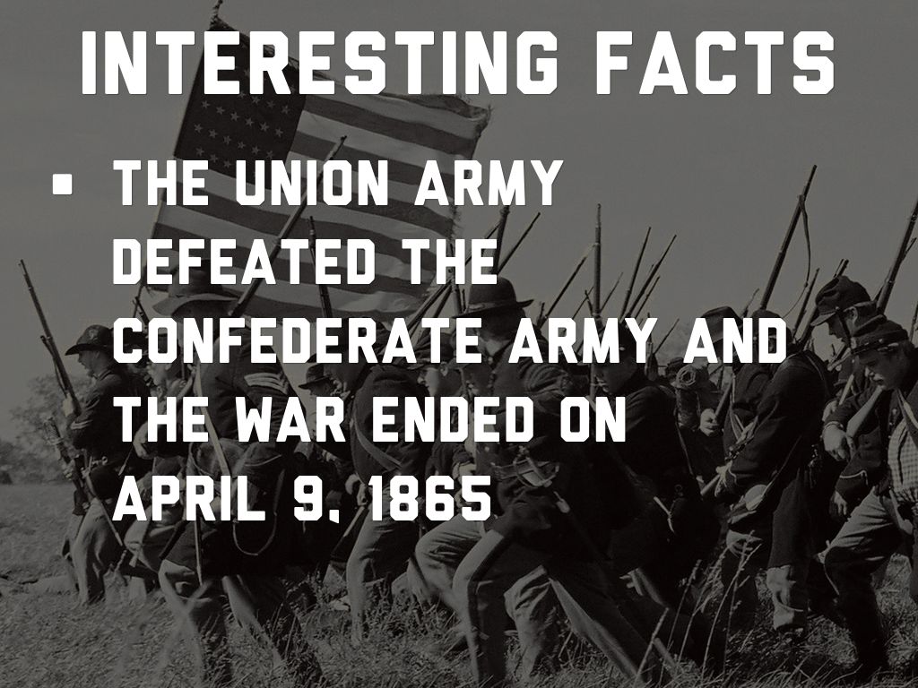 The union army defeated the confederate army and the war ended on April 9, 1865