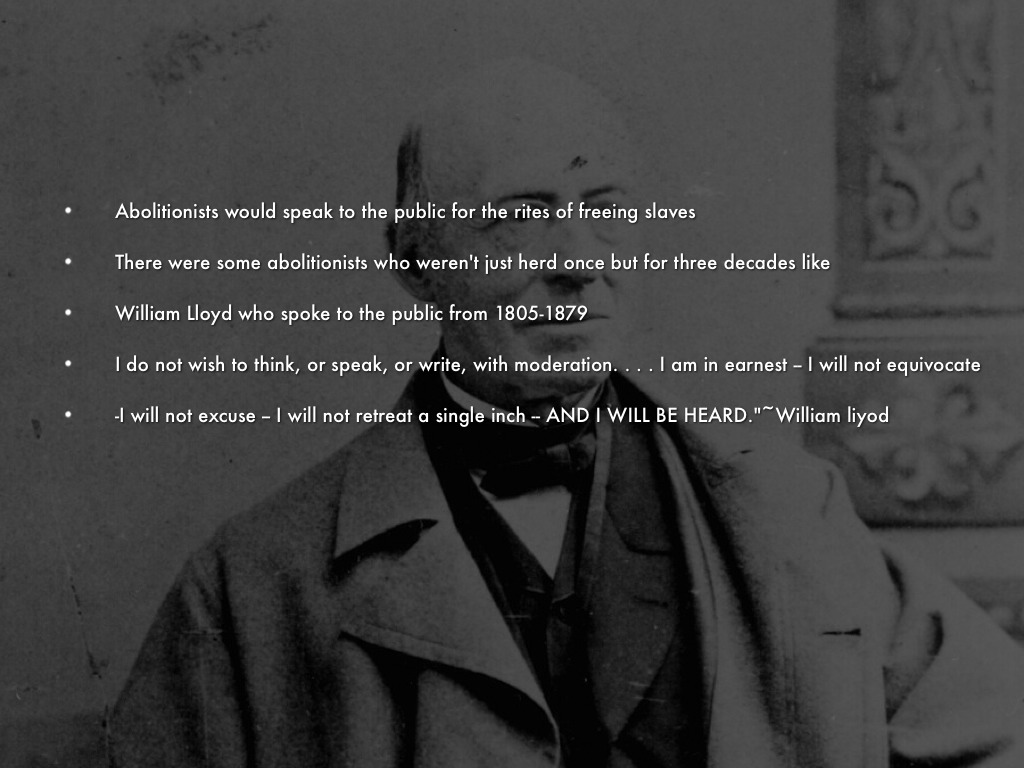 -I will not excuse -- I will not retreat a single inch -- AND I WILL BE HEARD."~William liyod
