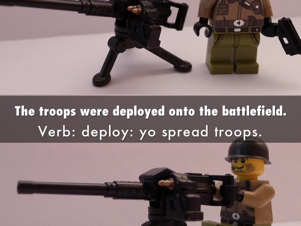 Verb: deploy: yo spread troops.