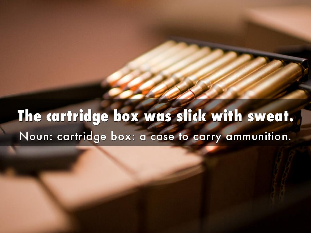 Noun: cartridge box: a case to carry ammunition.