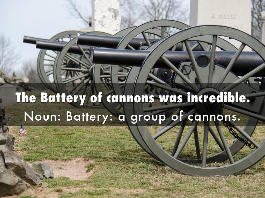 Noun: Battery: a group of cannons.