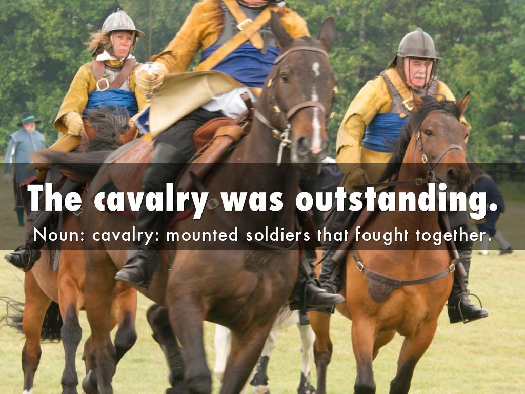 Noun: cavalry: mounted soldiers that fought together.