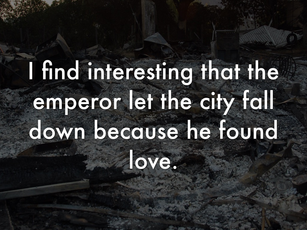 I find interesting that the emperor let the city fall down because he found love.