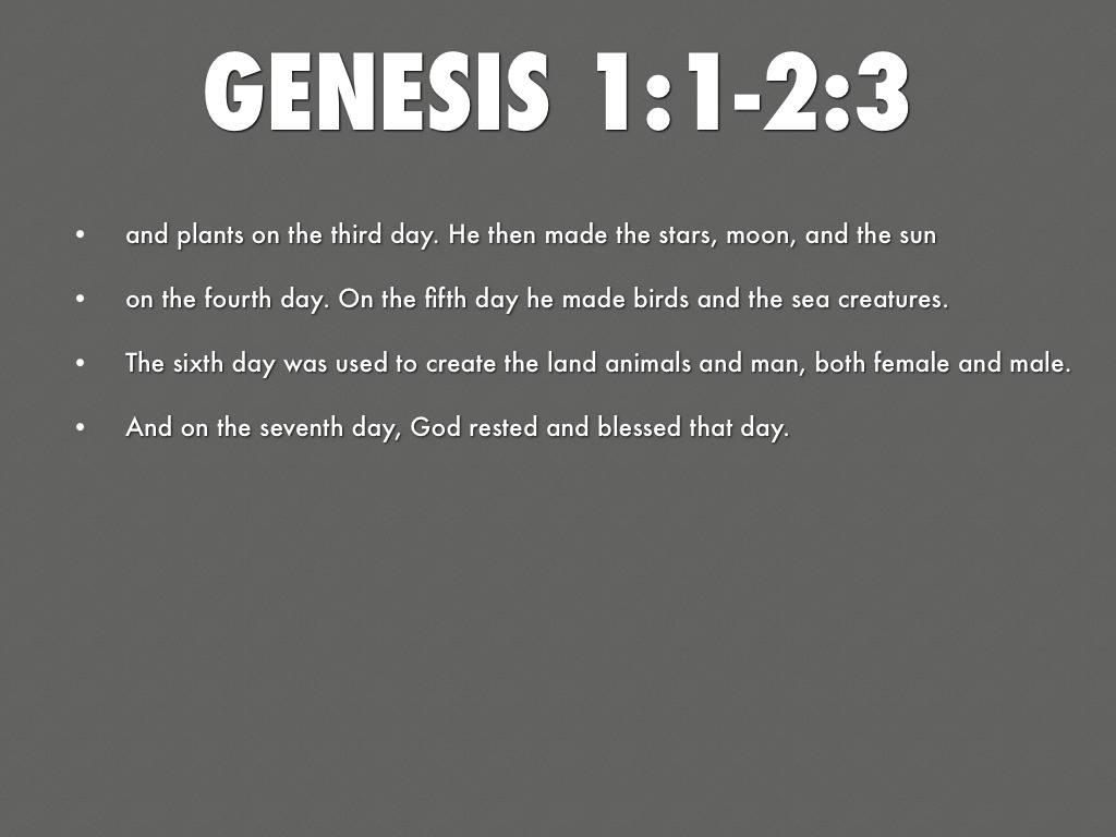 on the fourth day. On the fifth day he made birds and the sea creatures.