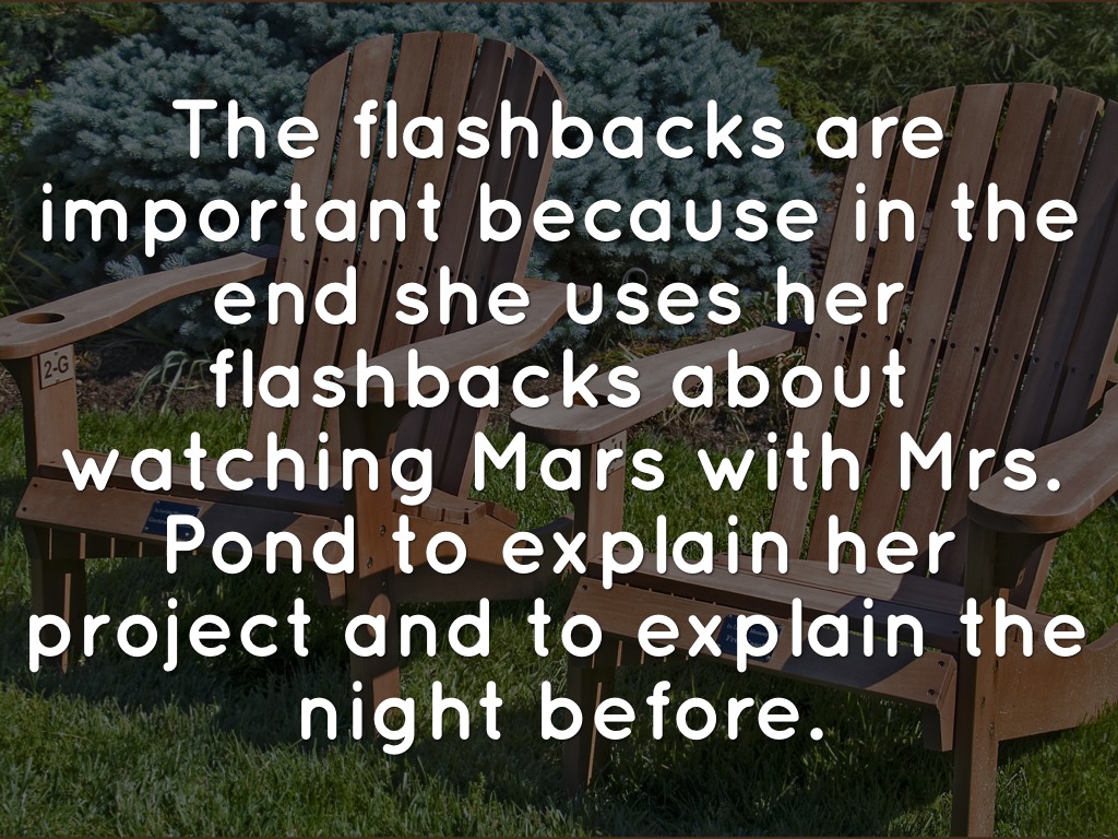 The flashbacks are important because in the end she uses her flashbacks about watching Mars with Mrs. Pond to explain her project and to explain the night before.
