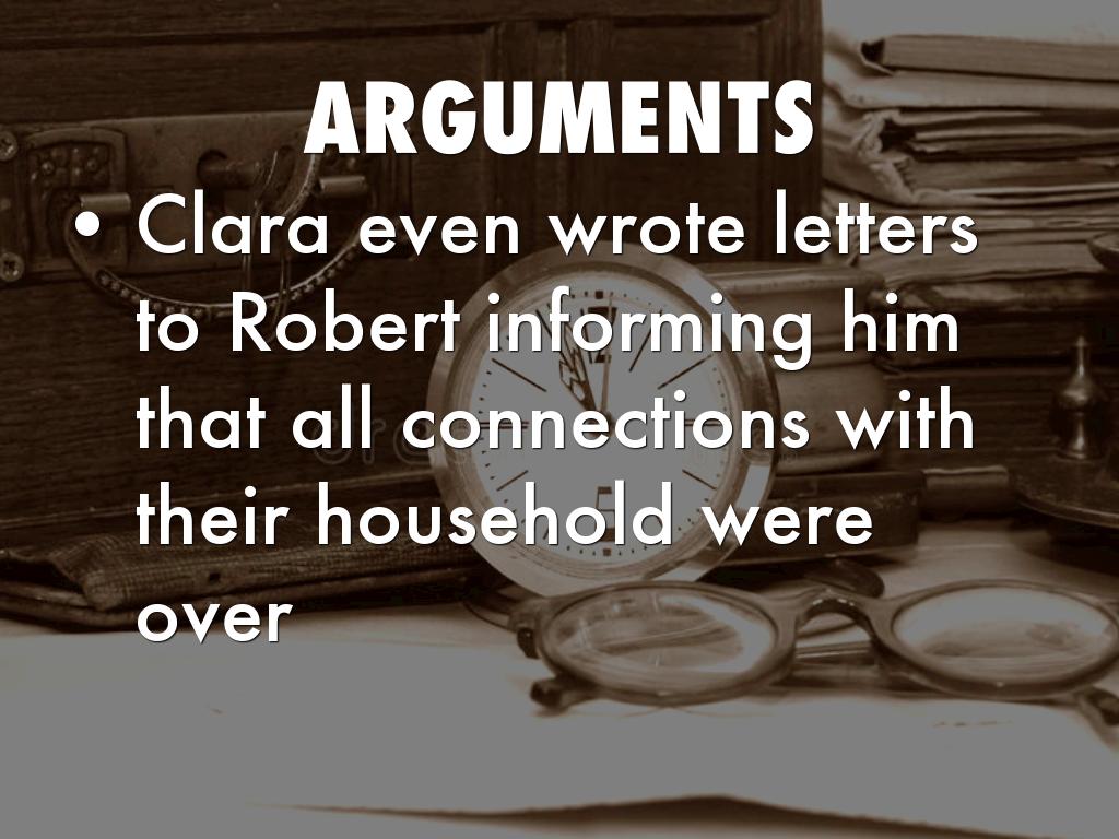 • Clara even wrote letters to Robert informing him that all connections with their household were over