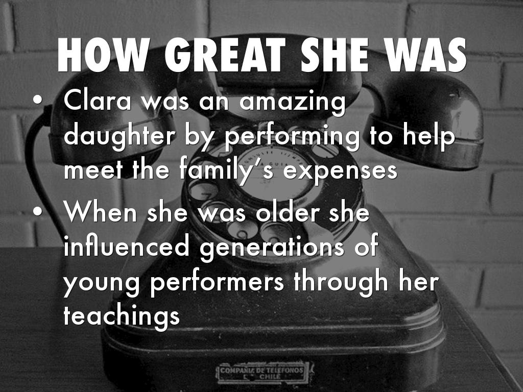 • Clara was an amazing daughter by performing to help meet the family’s expenses