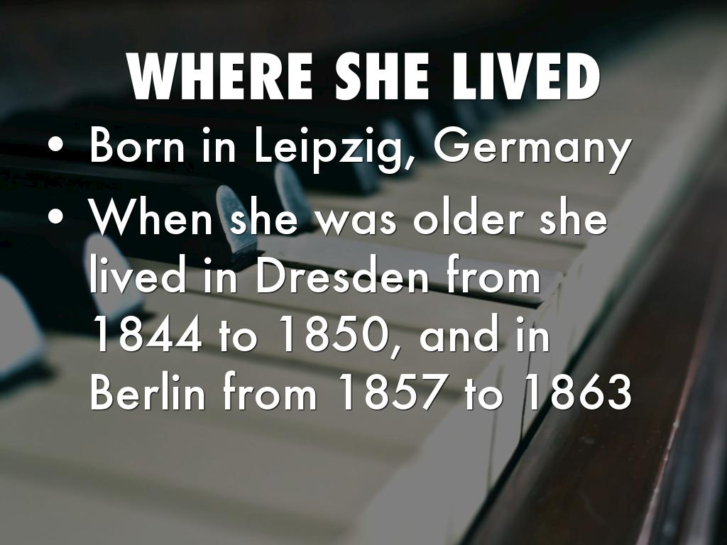 • When she was older she lived in Dresden from 1844 to 1850, and in Berlin from 1857 to 1863