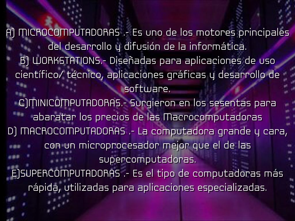 A) MICROCOMPUTADORAS .- Es uno de los motores principales del desarrollo y difusión de la informática.