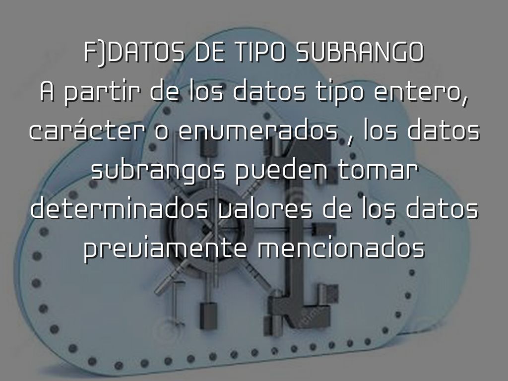 A partir de los datos tipo entero, carácter o enumerados , los datos subrangos pueden tomar determinados valores de los datos previamente mencionados