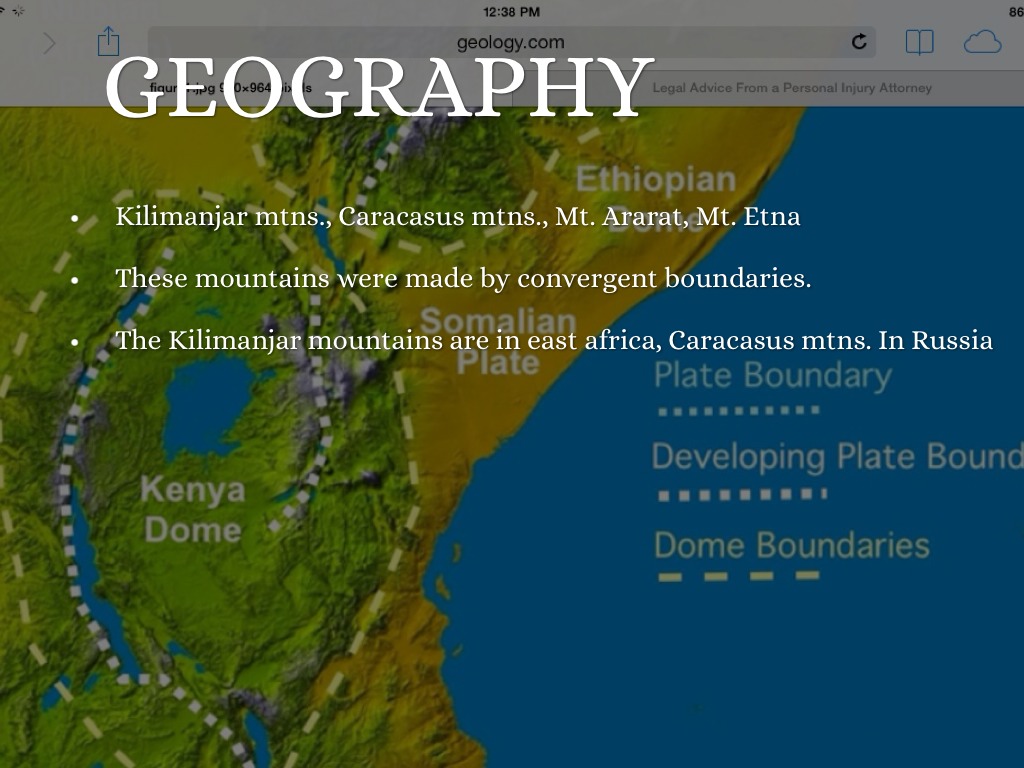 Kilimanjar mtns., Caracasus mtns., Mt. Ararat, Mt. Etna