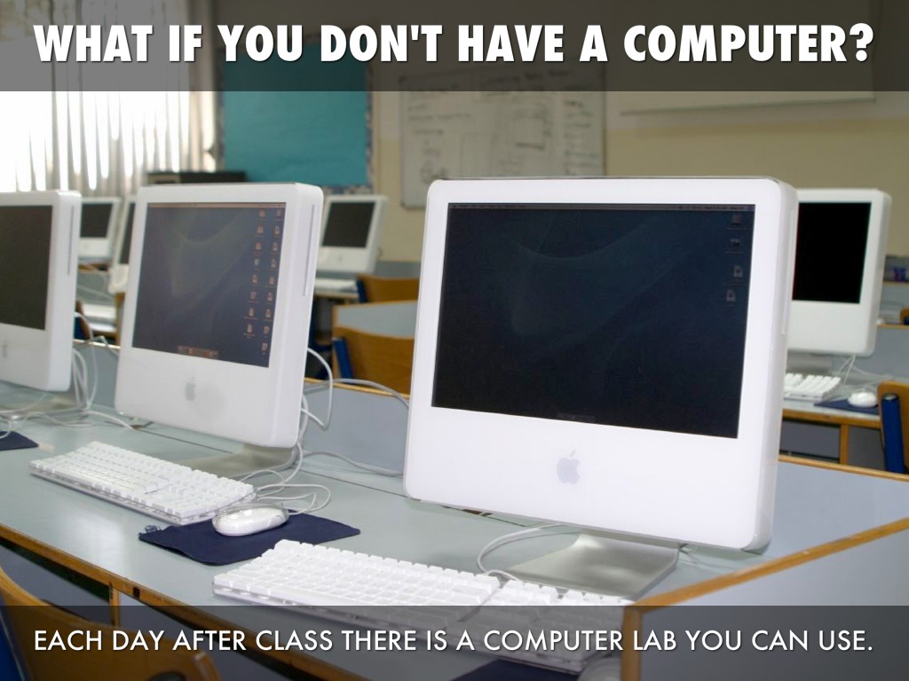 EACH DAY AFTER CLASS THERE IS A COMPUTER LAB YOU CAN USE.