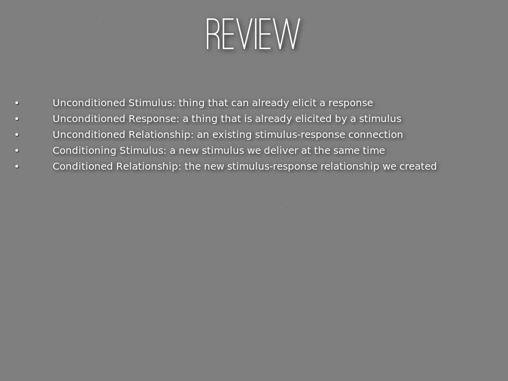 Unconditioned Stimulus: thing that can already elicit a response