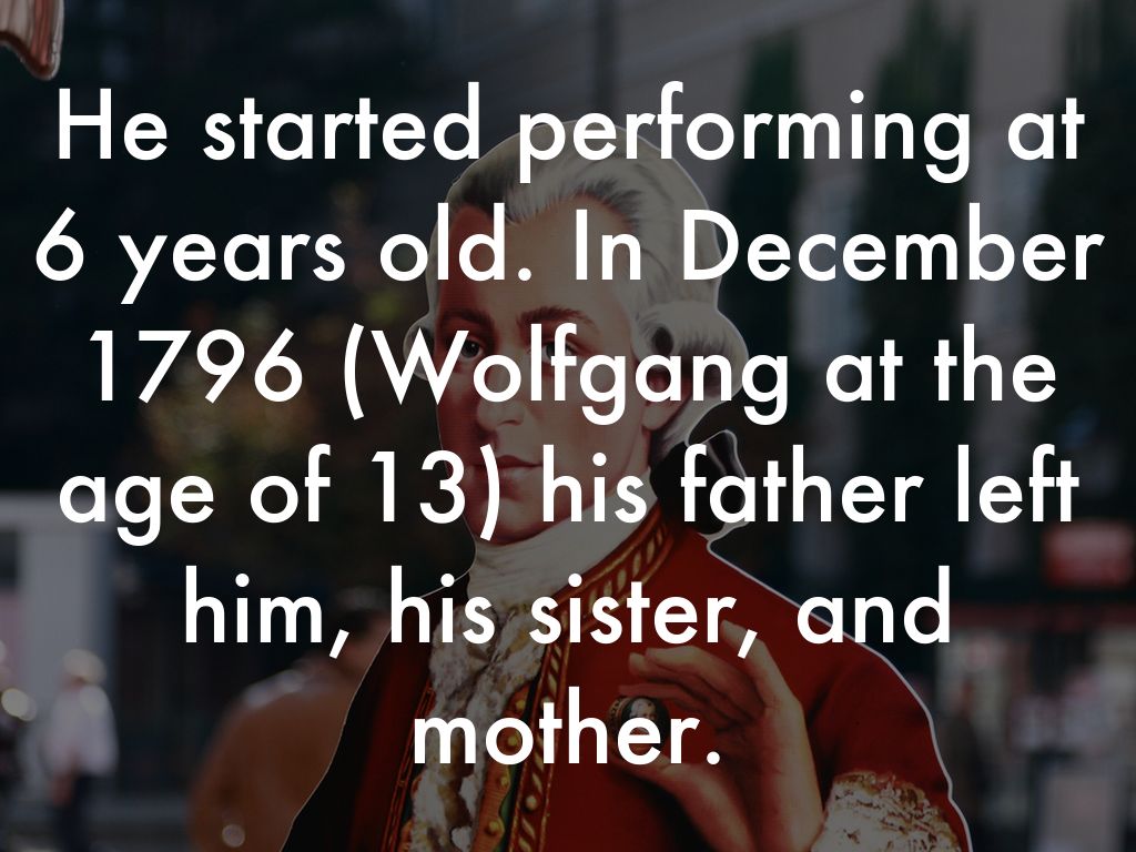 He started performing at 6 years old. In December 1796 (Wolfgang at the age of 13) his father left him, his sister, and mother.