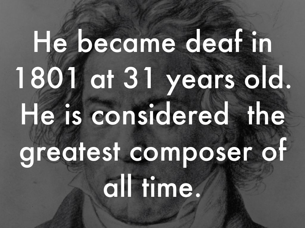 He became deaf in 1801 at 31 years old. He is considered the greatest composer of all time.
