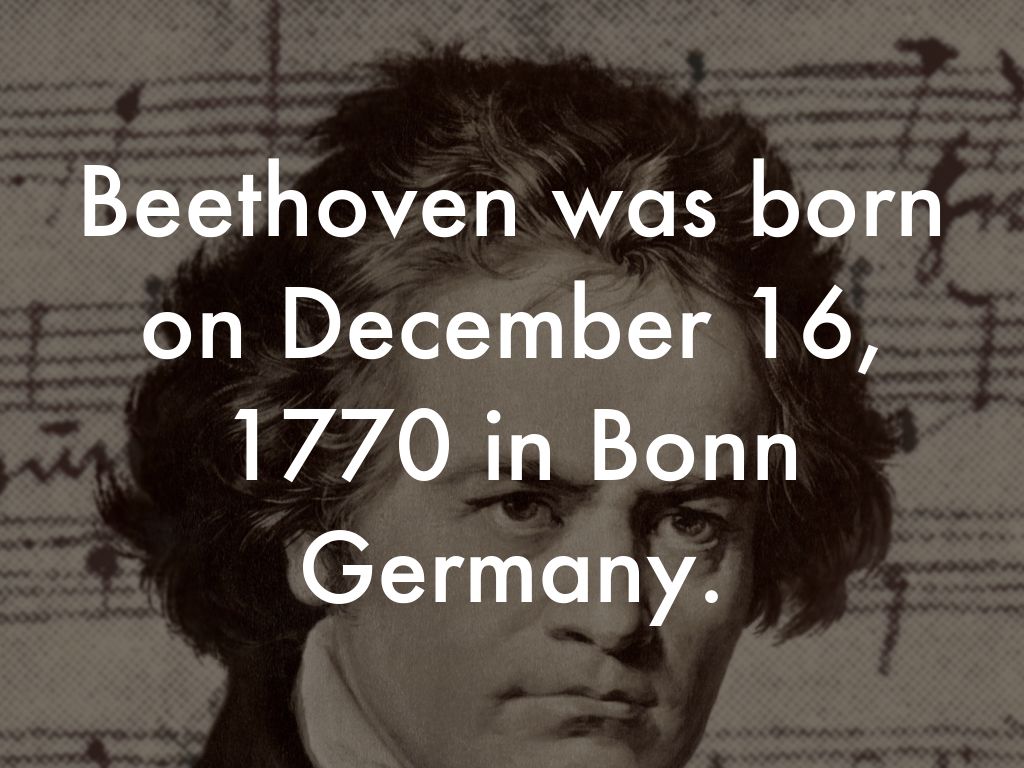 Beethoven was born on December 16, 1770 in Bonn Germany.
