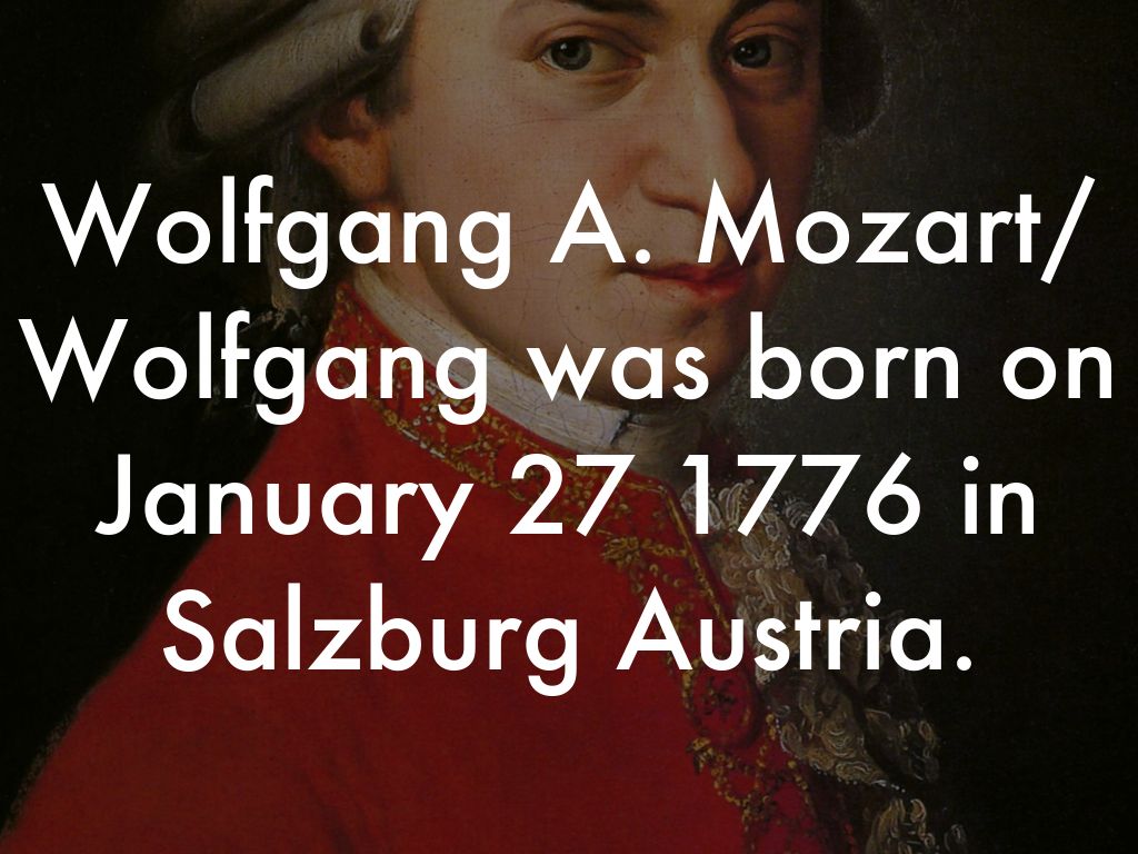 Wolfgang A. Mozart/ Wolfgang was born on January 27 1776 in Salzburg Austria.