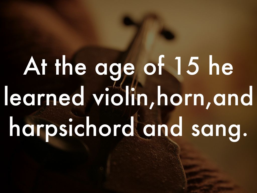 At the age of 15 he learned violin,horn,and harpsichord and sang.