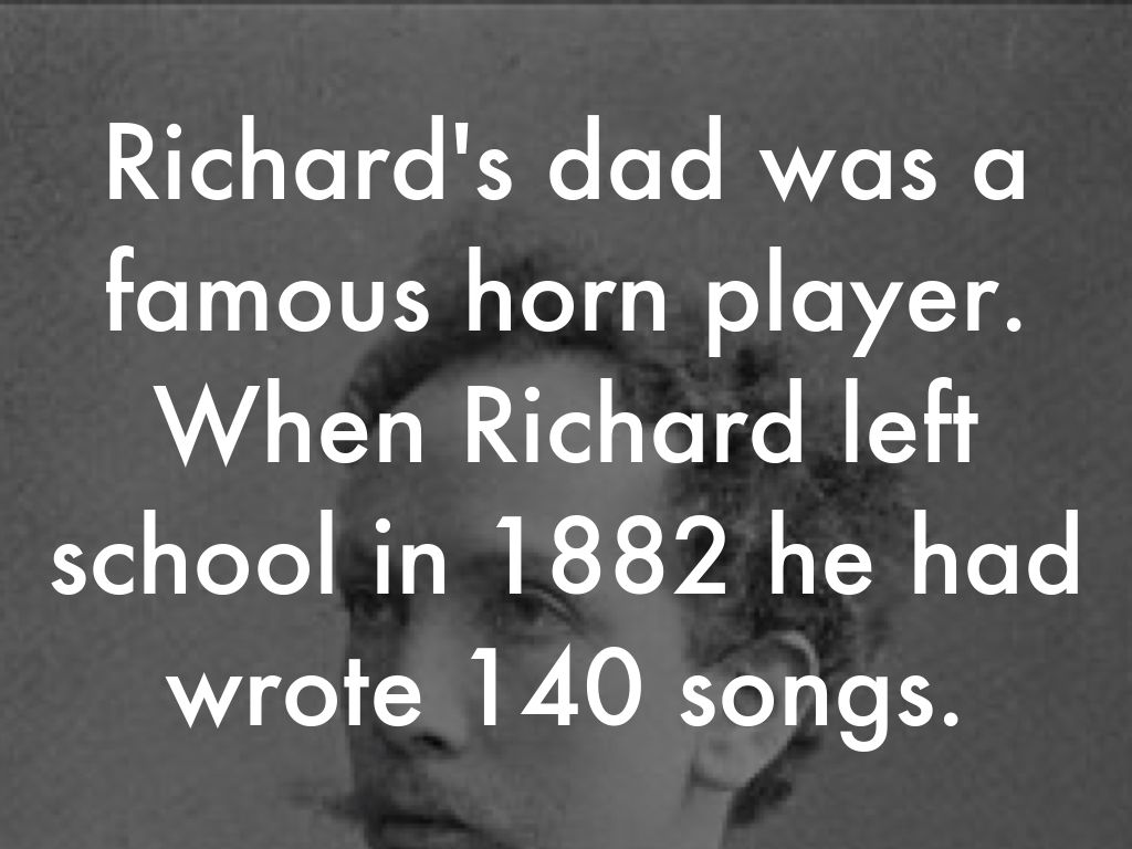 Richard's dad was a famous horn player. When Richard left school in 1882 he had wrote 140 songs.