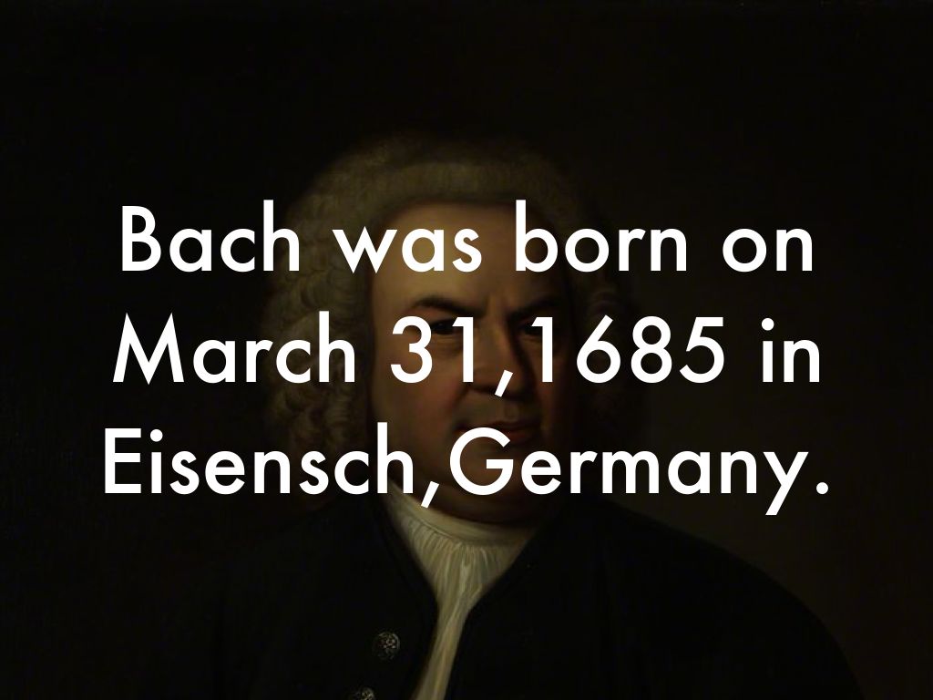 Bach was born on March 31,1685 in Eisensch,Germany.