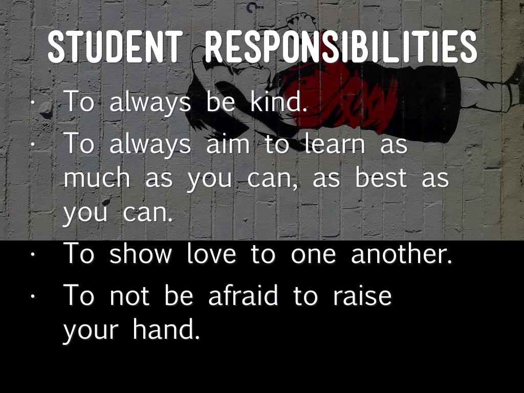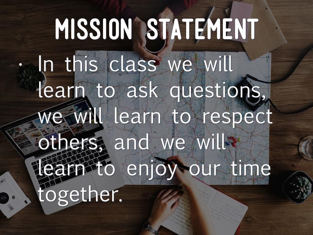 In this class we will learn to ask questions, we will learn to respect others, and we will learn to enjoy our time together.