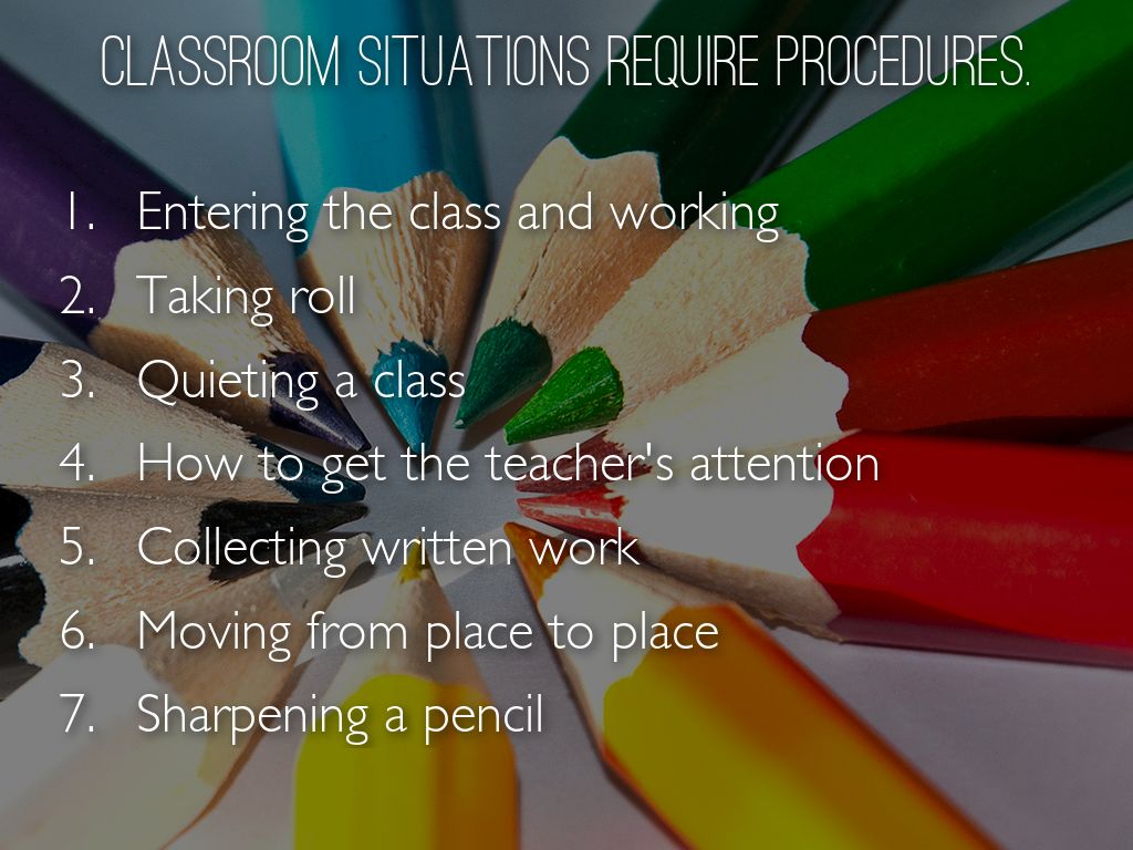 Education experts Harry and Rosemary Wong (1998) state, "the number one problem in the classroom is not discipline; it is the lack of procedures and routines" (p. 167).