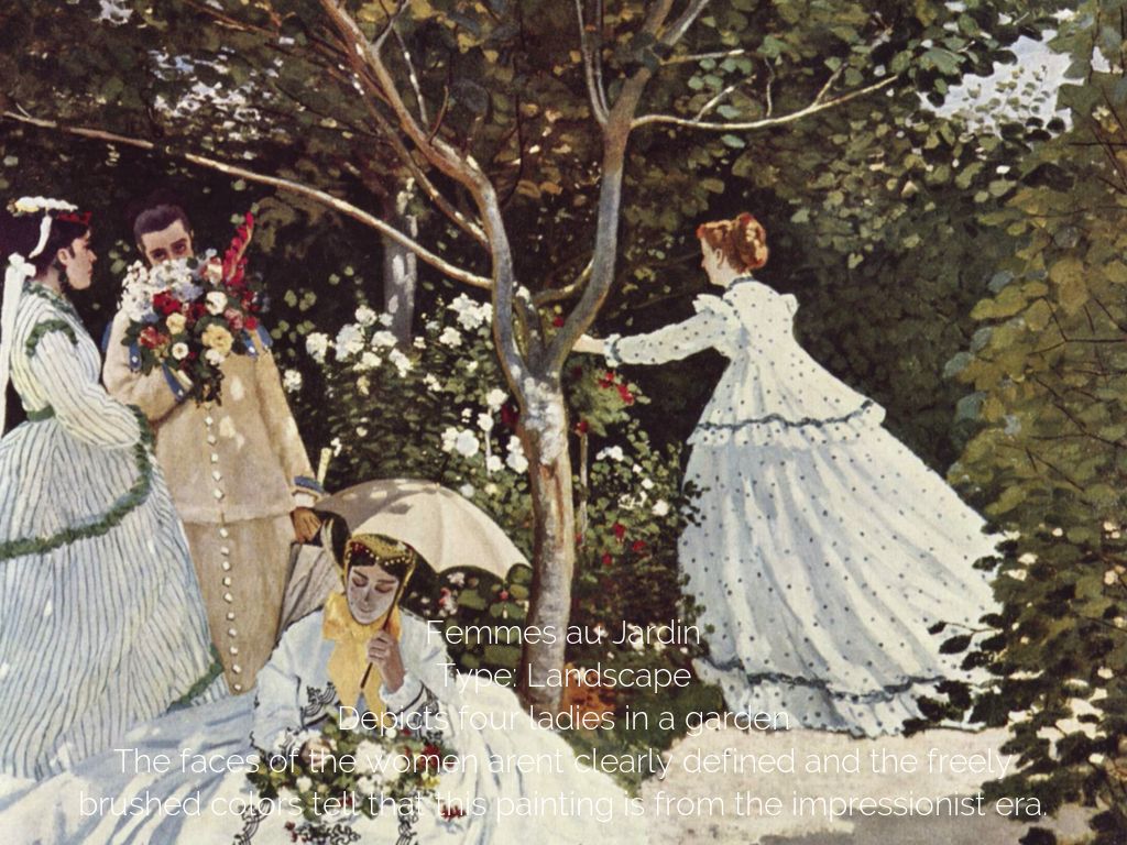 The faces of the women arent clearly defined and the freely brushed colors tell that this painting is from the impressionist era.