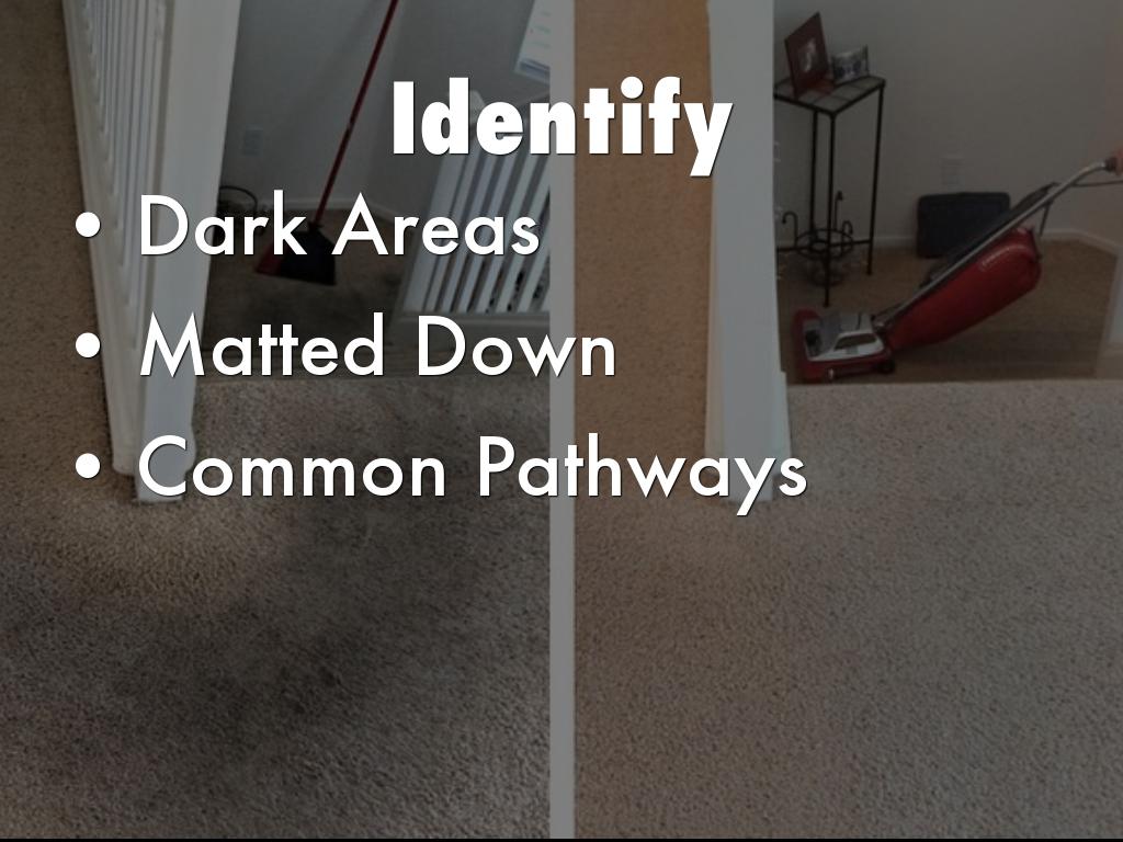 It isn't too hard to identify high traffic areas but basically these areas or traffic pathways can be identified by darker areas. Typically this carpet is matted down compared to the rest of the carpet especially with mild-long shag carpet. Just look for common pathways, such as in doorways, to the kitchen, to the couch, around the bed, through hallways. These areas get all the attention so of course they take the most damage over the months.