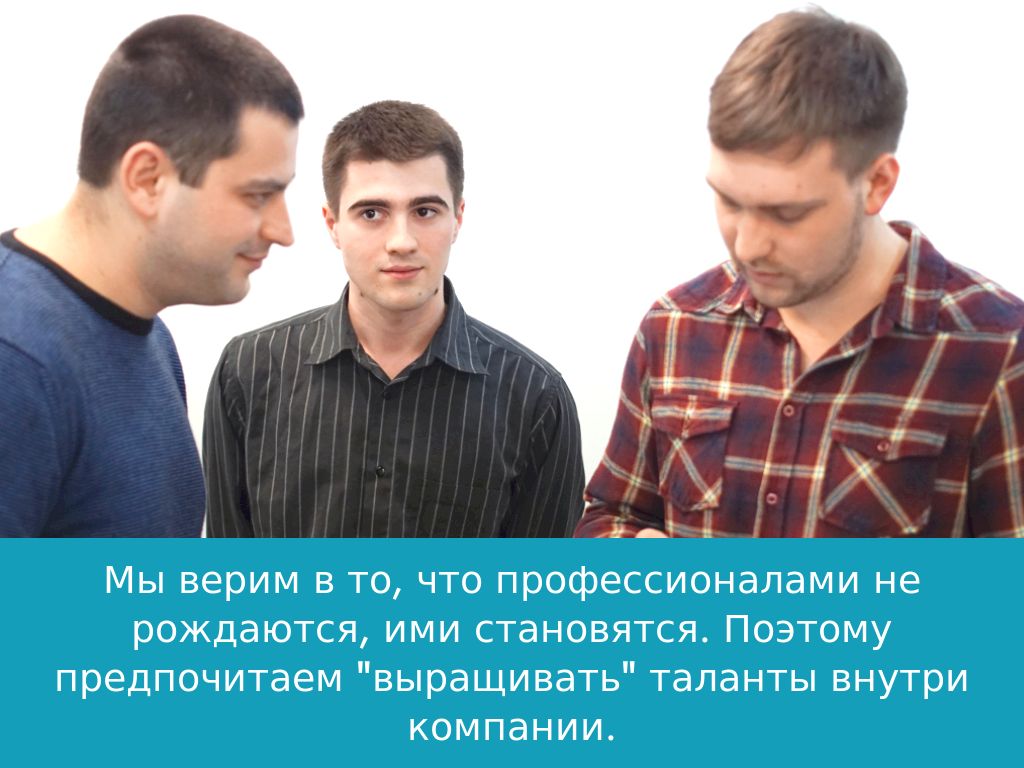 Мы верим в то, что профессионалами не рождаются, ими становятся. Поэтому предпочитаем "выращивать" таланты внутри компании.