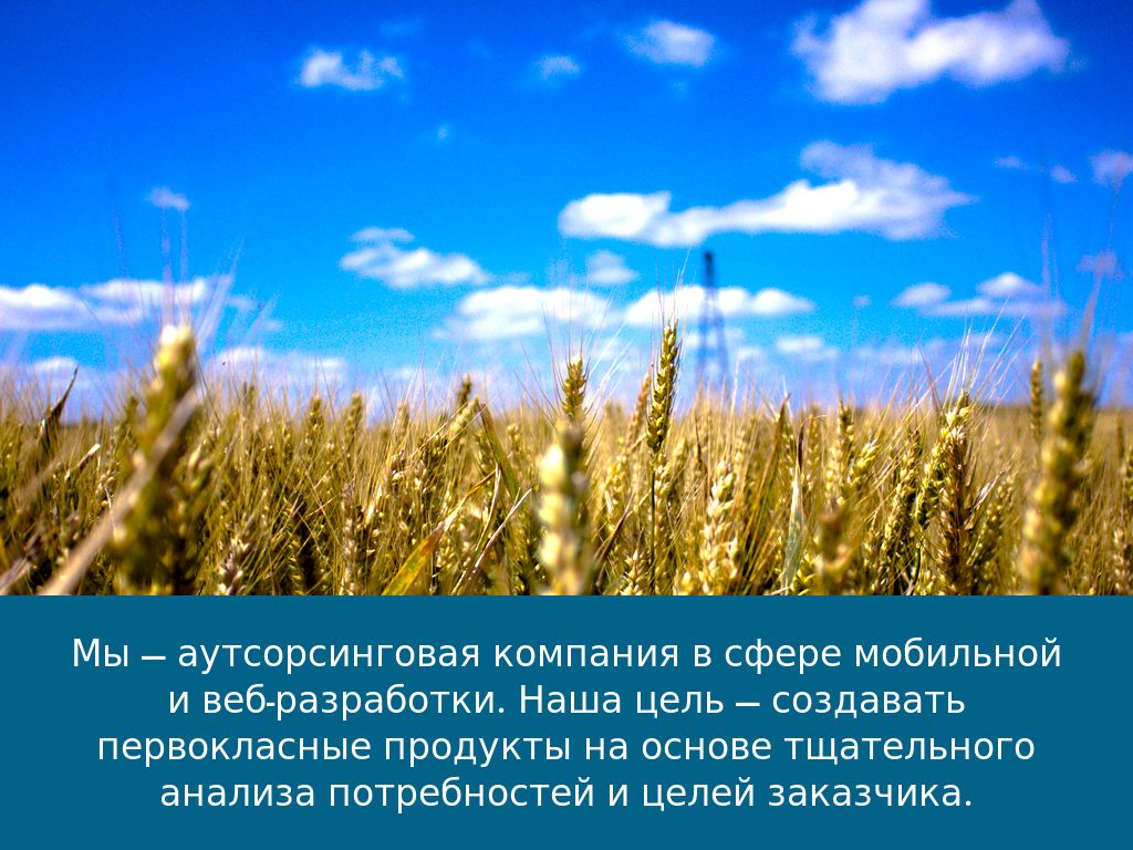 Мы — аутсорсинговая компания в сфере мобильной и веб-разработки. Наша цель — создавать первокласные продукты на основе тщательного анализа потребностей и целей заказчика.