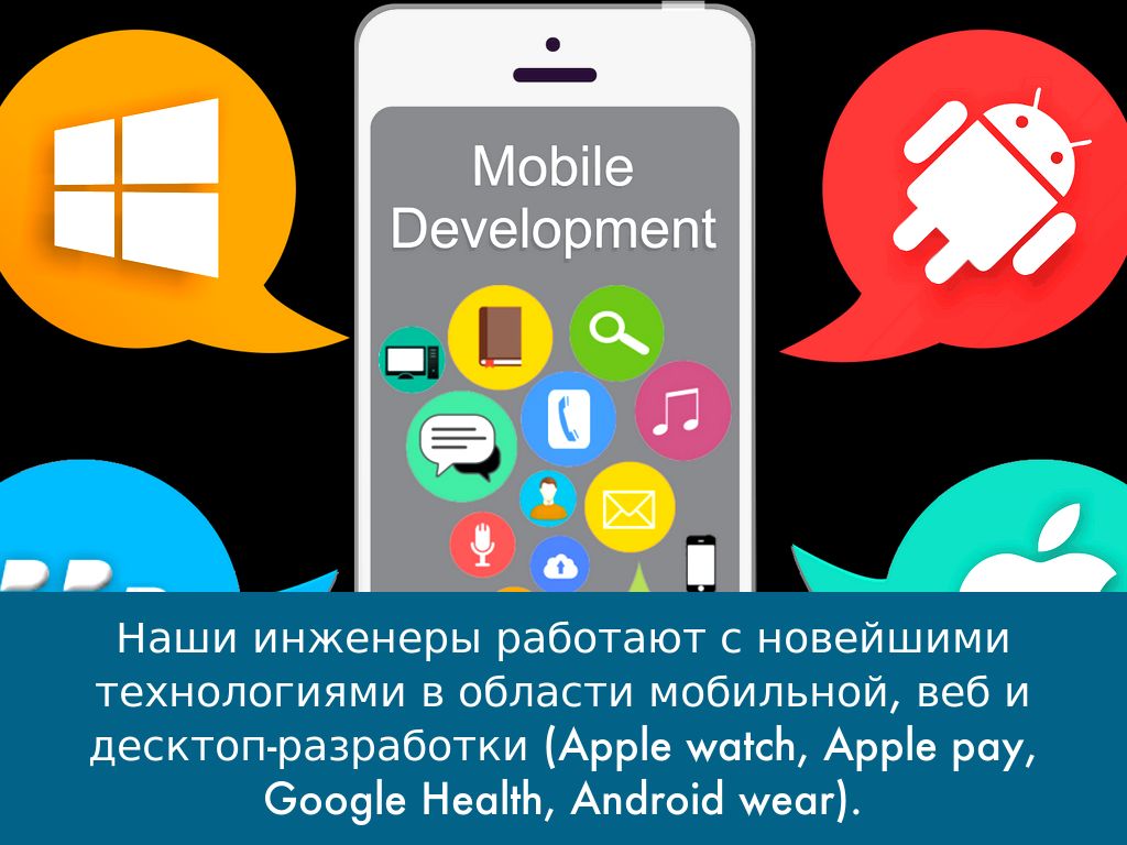 Наши инженеры работают с новейшими технологиями в области мобильной, веб и десктоп-разработки (Apple watch, Apple pay, Google Health, Android wear).