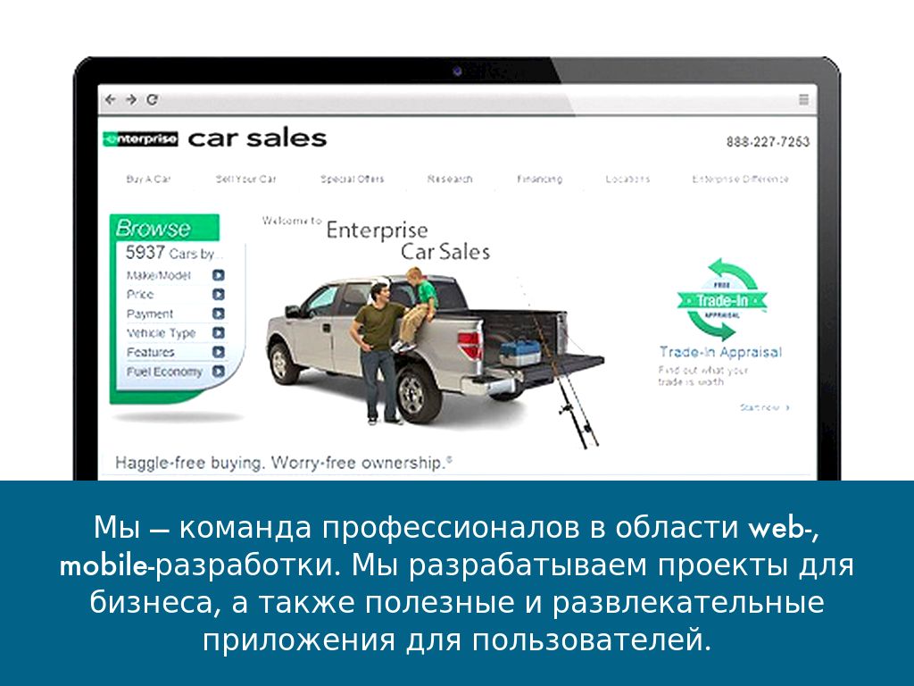 Мы — команда профессионалов в области web-, mobile-разработки. Мы разрабатываем проекты для бизнеса, а также полезные и развлекательные приложения для пользователей.